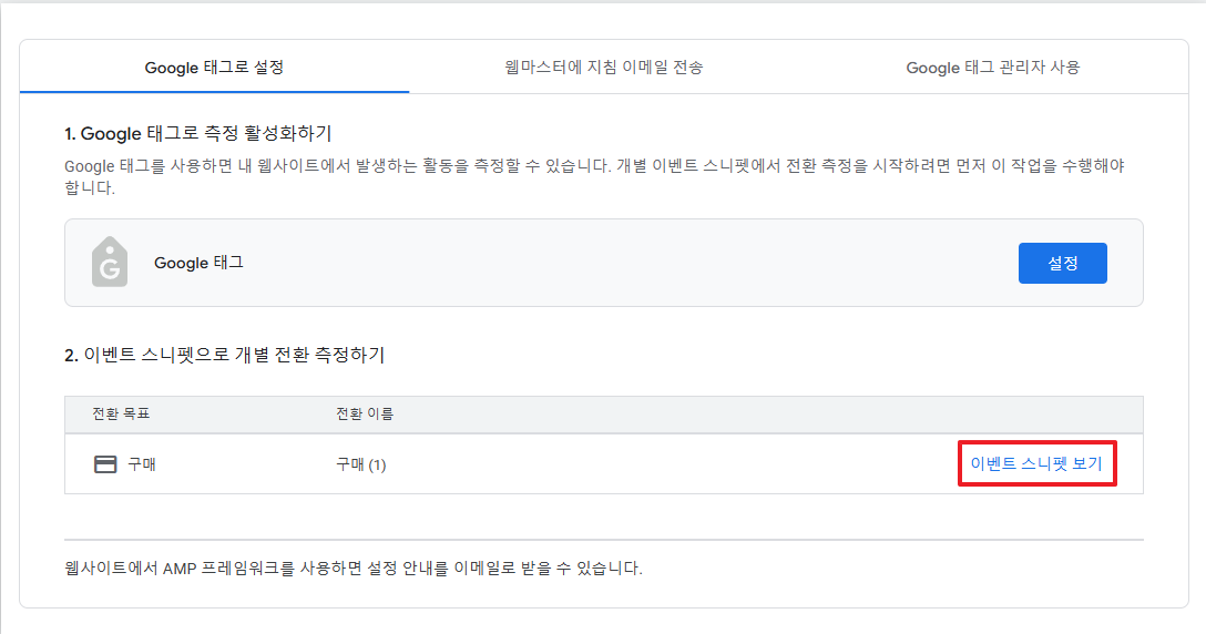 ※ 구글 애즈 전환 추적을 사용하려면 구글 애즈에서 최소 1개 이상의 광고 캠페인을 진행 중이어야 합니다.