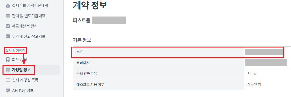 - MID : 토스페이 파트너스 > 회사 및 가맹점 > 가맹점 정보 > 기본정보 'MID'