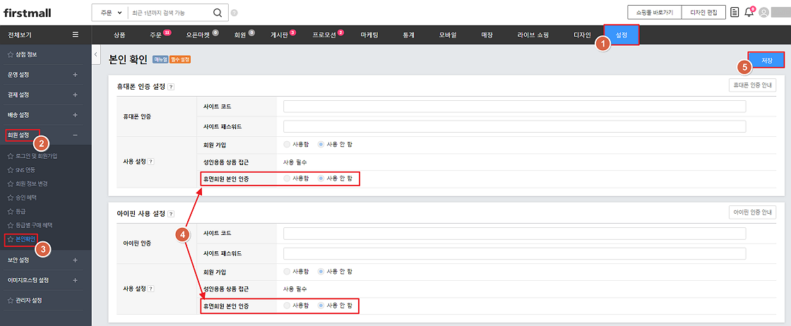('설정 > 회원 설정 > 본인 확인' 설정 필요)