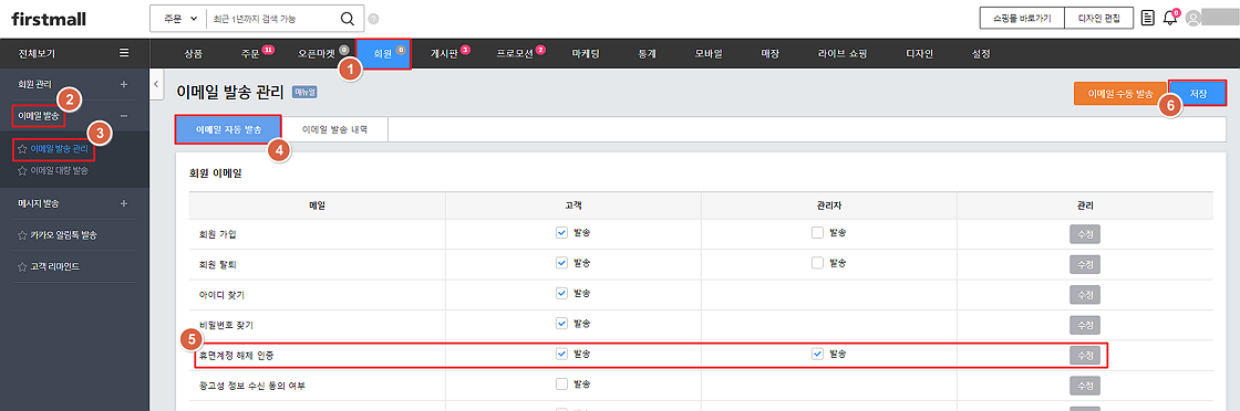 ('회원 > 이메일 발송 > 이메일 자동 발송'에서 해지 인증 메일 발송 설정 필요)
