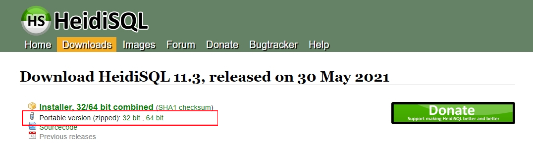 1. HeidiSQL↗에 접속 후 Portable version 을 클릭하세요.