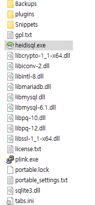 2. 다운로드 받은 파일에 대해 압축을 해제 하신 후 heidisql.exe 를 실행하세요.