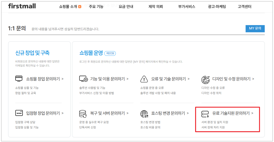 ※ 1:1 문의 경로: 고객센터 > 1:1 문의하기 > 유료 기술지원 문의하기