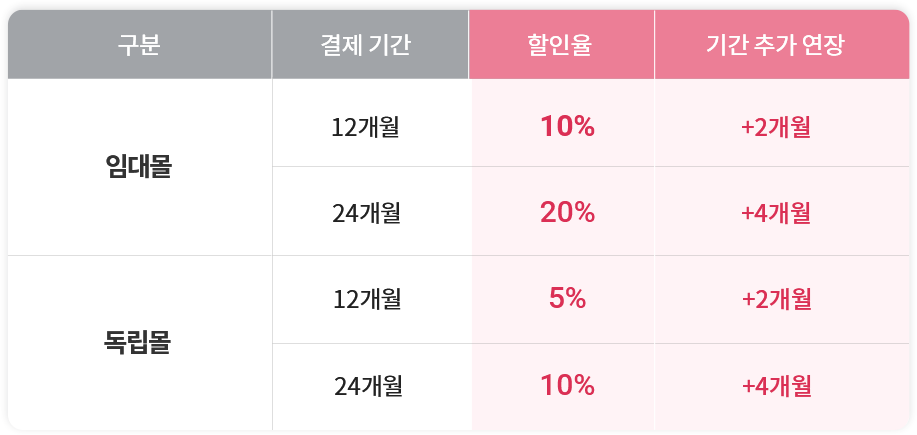 퍼스트몰 12개월, 24개월 이상 연장 고객 (3.0버전, 서버호스팅, 클라우드 이용 고객 제외)